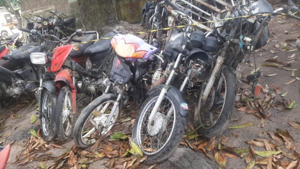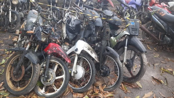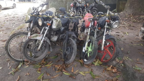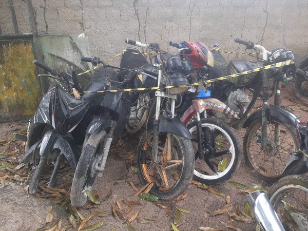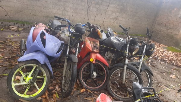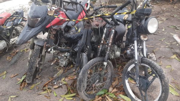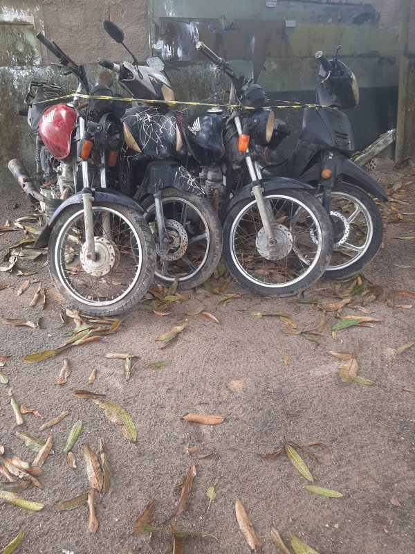 4 MOTOCICLETAS DIVERSAS SUCATAS INSERVÍVEIS COM MOTORES INSERVÍVEIS (02 HONDA E 02 SHINERAY)