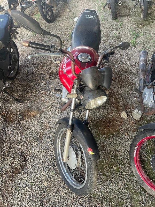 HONDA/CG 125 TITAN ES, ANO/MOD 2001/2001, COR VERMELHO, COMBUS GASOLINA, PLACA MUK9717 AL, RENAVAM 776687263, CHASSI 9C2JC30201R073909, Nº MOTOR JC30E21073909. SITUAÇÃO DO VEICULO: CARENAGEM TRASEIRA AUSENTE, TANQUE AMASSADO E COM DANOS, PISCAS DANIFICADOS, SEXTO DIGITO DO MOTOR COM DANOS SEM CARACTERIZAR ADULTERAÇÃO, CHASSI EM ESTADO INICIAL DE OXIDAÇÃO, TRATAMENTO E REGULARIZAÇÃO POR CONTA DO COMPRADOR.