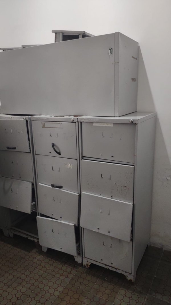 059 - GRANDE QUANTIDADE DE CARCAÇAS: CADEIRAS, BALDES, LIXEIRAS, BIRÔS, ESTANTES DE AÇO, GAVETEIROS E DEMAIS MÓVEIS INSERVÍVEIS.