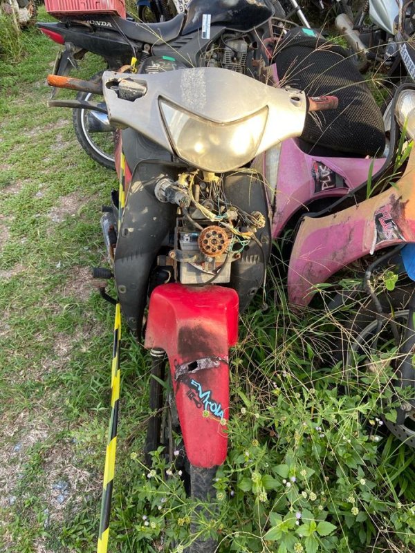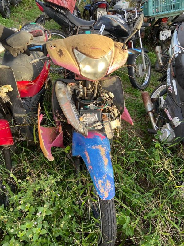 HONDA/CG 160 FAN, ANO/MOD N/I/N/I, COR AZUL, COMBUS ALCOOL/GASOLINA, PLACA N/I - N/I, RENAVAM N/I, CHASSI N/I, Nº MOTOR N/I, LOC. PÁTIO MACEIÓ (CLASSIFICAÇÃO: SUCATA INSERVÍVEL NÃO IDENTIFICADO). OBSERVAÇÕES: CHASSI E MOTOR ADULTERADOS, VEÍCULO ORIGINAL NÃO IDENTIFICADO, SUCATA INSERVÍVEL