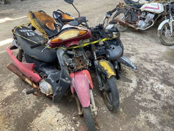 HONDA/CG 125 TODAY, COR PRETA, ANO/MOD 1990/1990, PLACA GRU9436 - MG, RENAVAM 247970867, CHASSI DESTRUÍDO, Nº MOTOR TROCADO (SUCATA INSERVÍVEL - MOTOR INSERVÍVEL). // HONDA/POP100, COR VERMELHA, ANO/MOD 2007/2007, PLACA MUU7254 - AL, RENAVAM 926840932, CHASSI 9C2HB02107R028920, Nº MOTOR HB02E17028920 (SUCATA APROVEITÁVEL - MOTOR SERVÍVEL). // I/CHARMING BULL KRC50, COR PRETA, ANO/MOD 2013/2013, PLACA S/PLACA107 , CHASSI LTEPCBLB1D4001008, Nº MOTOR 1P39FMB13021008 (SUCATA APROVEITÁVEL - MOTOR SERVÍVEL). // CG 150 TITAN ES - HONDA, COR AZUL, ANO/MOD 2006/2006, PLACA S/PLACA108 , CHASSI 9C2KC08506R863047, Nº MOTOR KC08E56863047 (SUCATA INSERVÍVEL - MOTOR INSERVÍVEL).