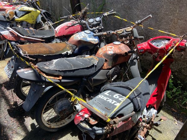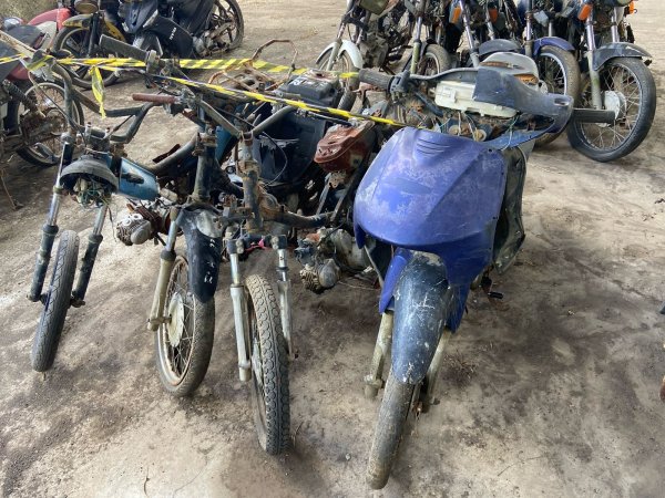 YAMAHA/YBR 125E, COR VERDE, ANO/MOD , PLACA S/PLACA118 , CHASSI DESTRUÍDO, Nº MOTOR DESTRUÍDO (SUCATA INSERVÍVEL - MOTOR INSERVÍVEL). // HONDA/CG 125, COR PRATA, ANO/MOD , PLACA S/PLACA119 , CHASSI DESTRUÍDO, Nº MOTOR JC30E11143123 (SUCATA INSERVÍVEL - MOTOR INSERVÍVEL). // HONDA/CG 150 TITAN KS, COR PRETA, ANO/MOD 2004/2005, PLACA DLX9727 - SP, RENAVAM 836744543, CHASSI DESTRUÍDO, Nº MOTOR KC08E15805503 (SUCATA INSERVÍVEL - MOTOR INSERVÍVEL).