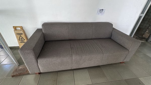 010 - 01 SOFÁ P/ 03 LUGARES DE TECIDO CINZA.