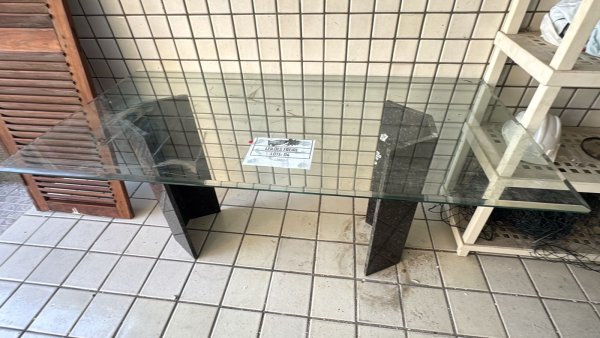 004 - 01 MESA DE VIDRO C/ BASE DE GRANITO 1,70X0,80.